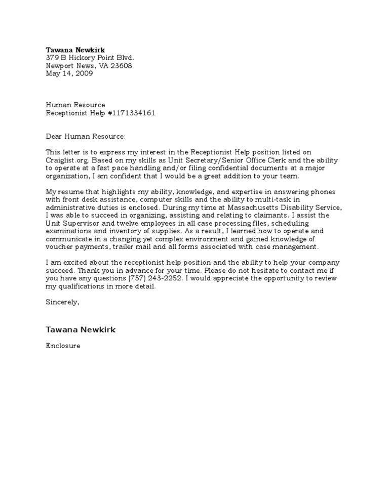 Place your return address on the top left of the envelope. Learn how to write that perfect cover letter to get you the job you deserve. Please let me know if there is anything specific that you would like me to do. The position of an office secretary is purely administrative in nature with some clerical work involved. Learn the best way to write your own powerful cover letter that will separate you from the competition !